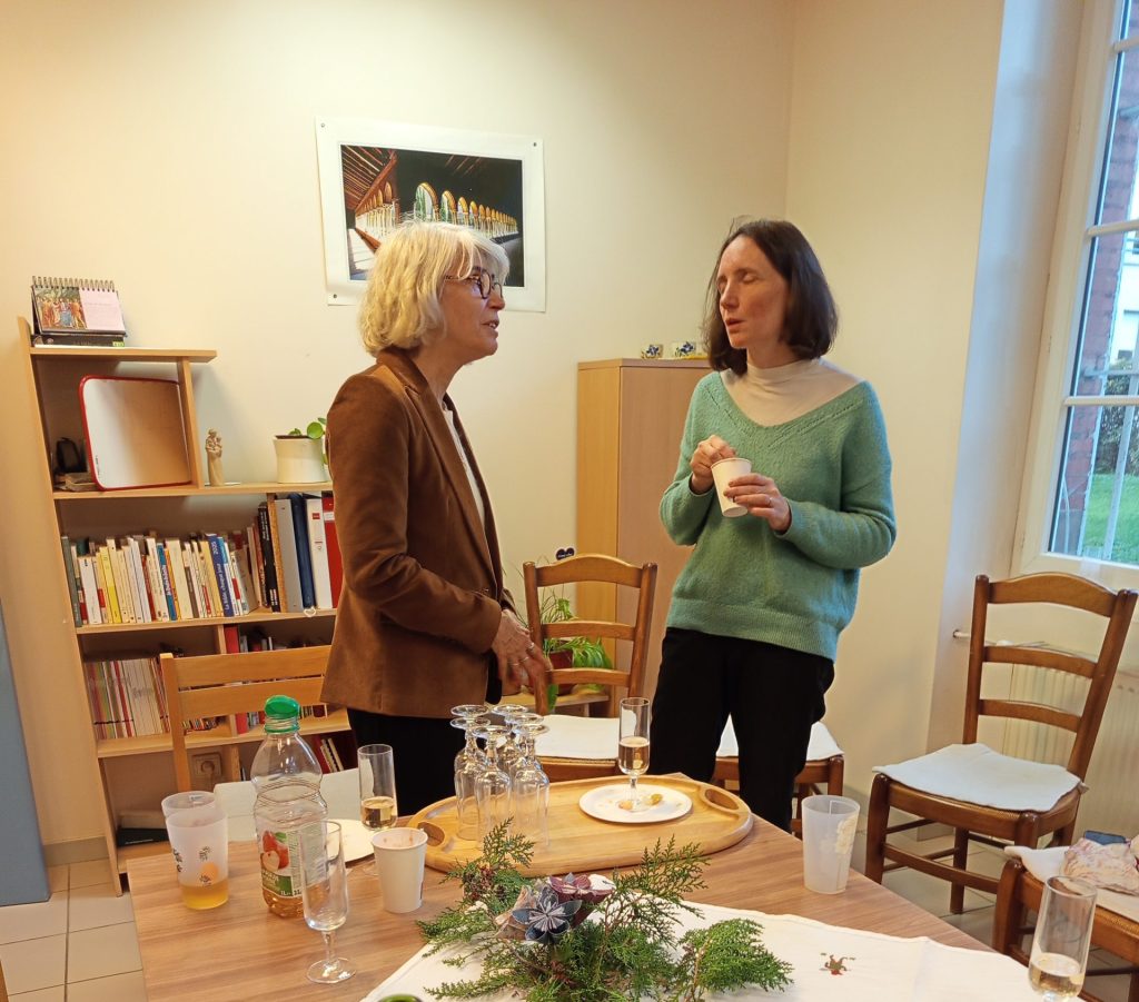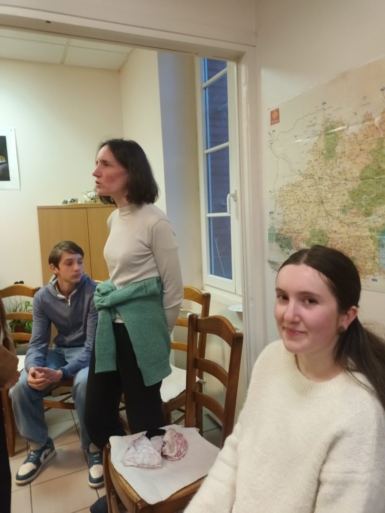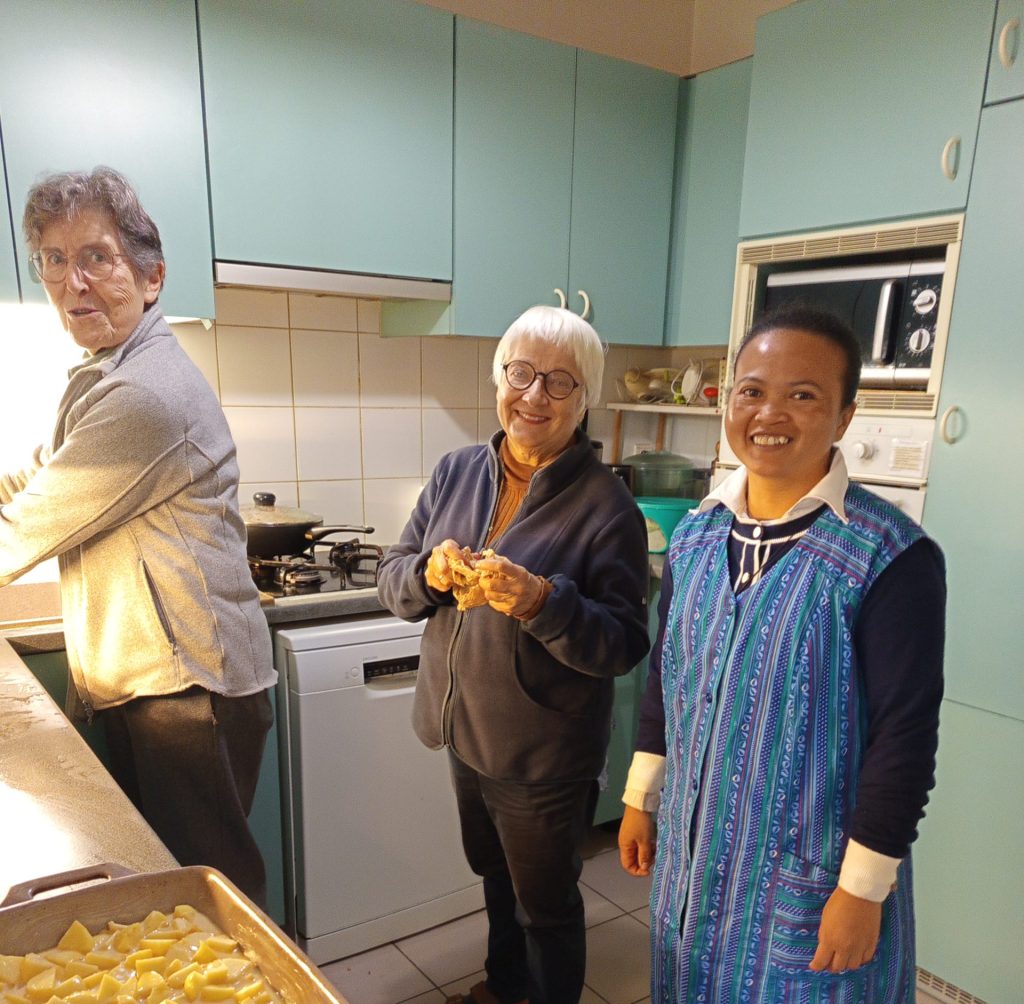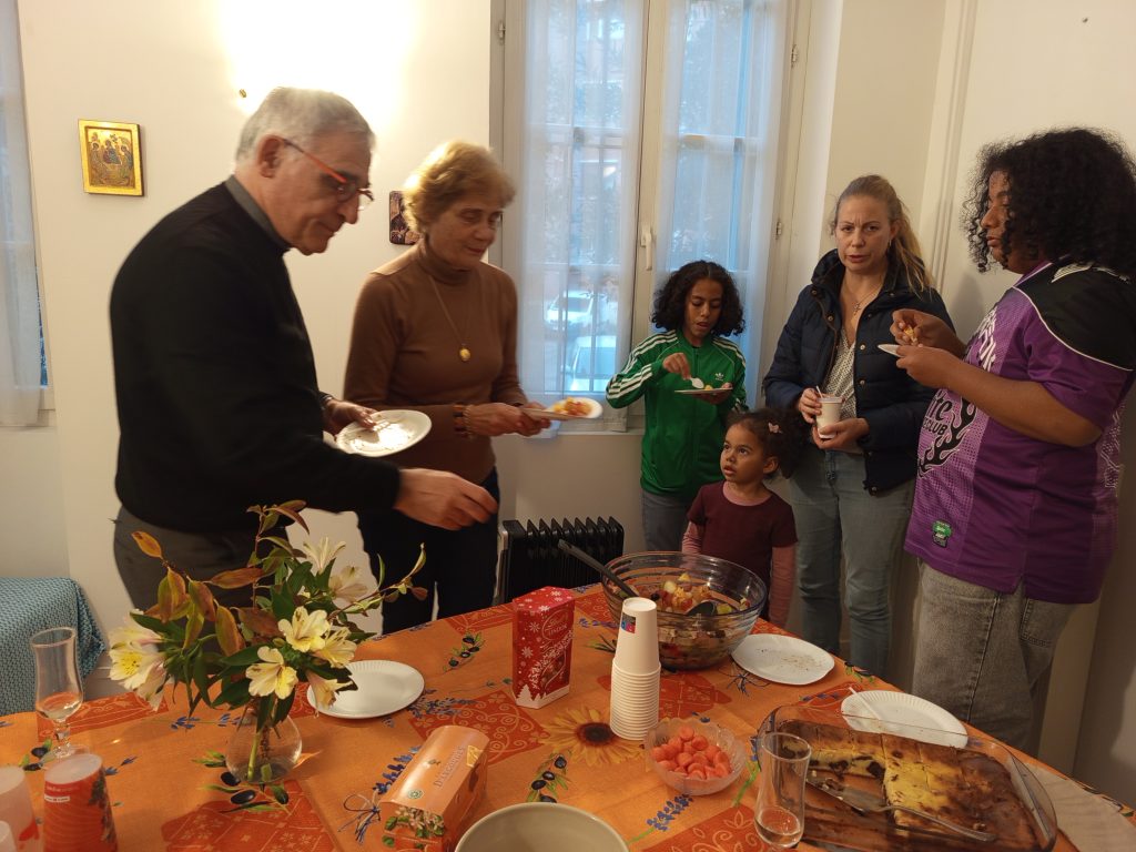 Pour clôturer notre belle rencontre, nous avons repris place autour de la table pour écouter le « se livrer » de Mère Thérèse composé et chanté par Sr Cécile Direz. Chacun a pu y faire ensuite écho (y compris Priya, notre benjamine, sur les genoux de sa maman) avant de le réécouter une deuxième fois.