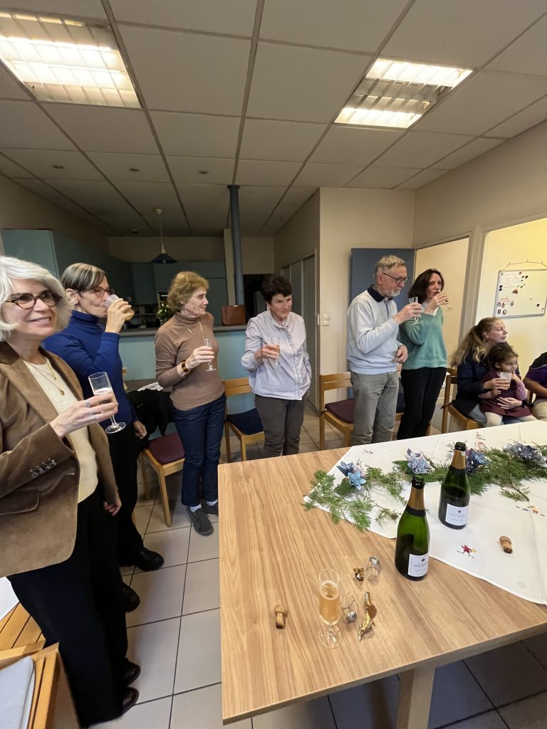 Nous avons bu, pour terminer, le champagne offert par une famille afin de nous mélanger avant d’aller prendre le goûter préparé dans une pièce voisine.